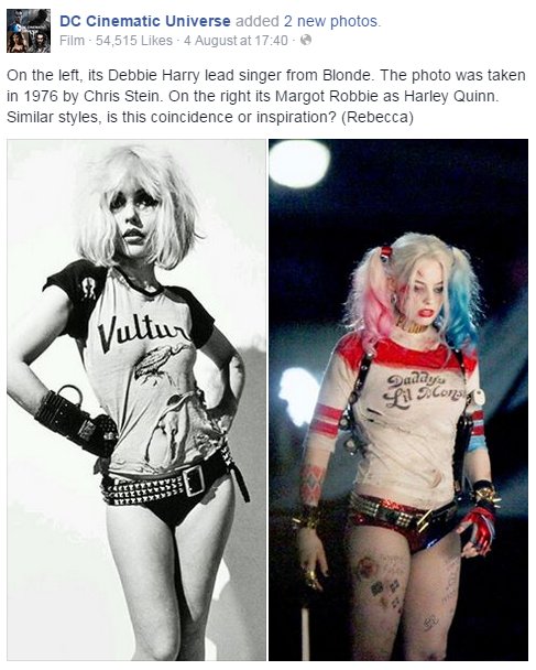 Debbie, que diz ser influenciada fortemente por Marilyn Monroe, serviu como referência não só para diversas cantoras modernas, como Madonna, Lady Gaga e Hayley Williams, mas também para a ficção, em filmes como Atomic Blonde e personagens como Harley Quinn, cujo visual no filme “Esquadrão Suicida” é inegavelmente inspirado em Harry.